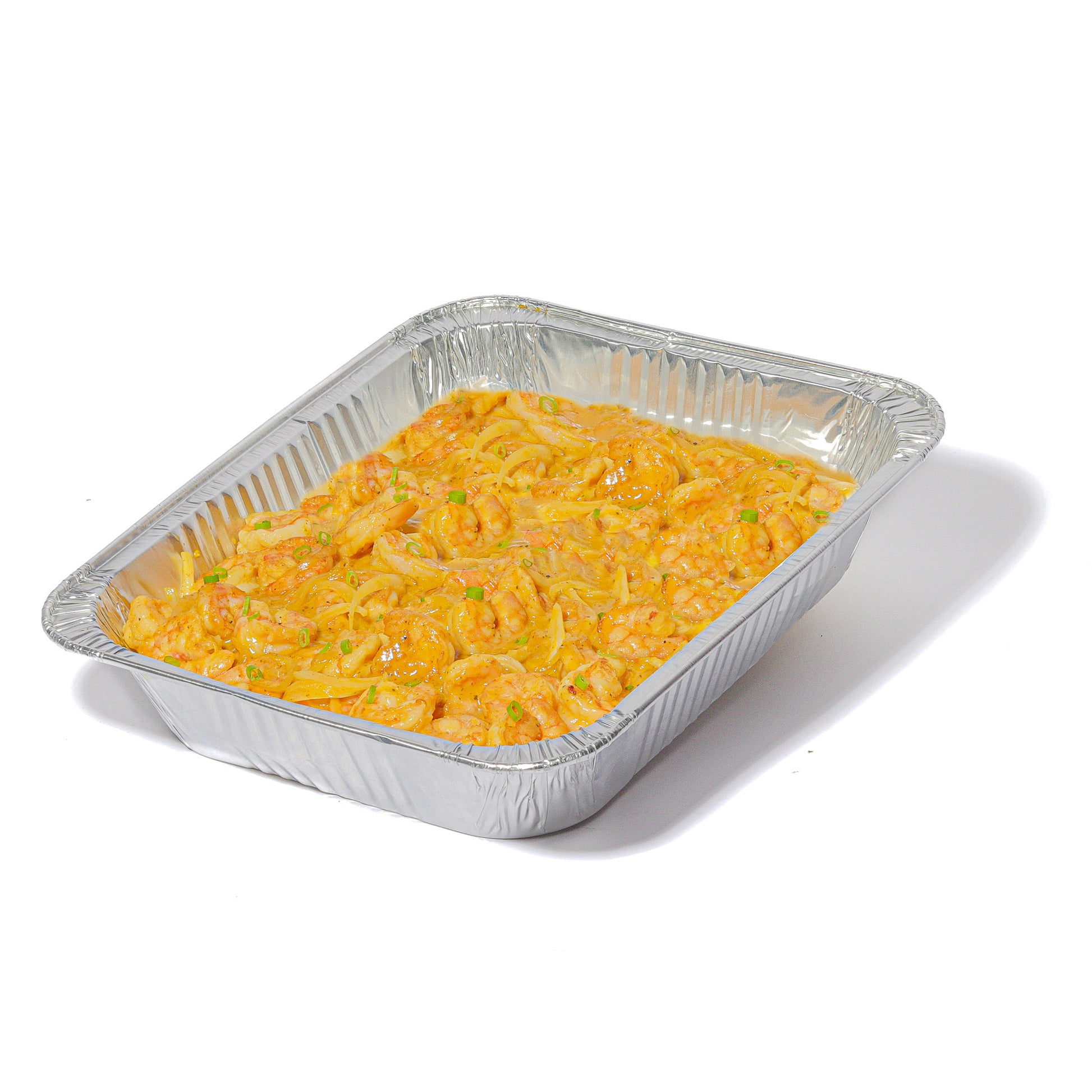 Tray of 90 shrimp sealed in coconut oil, stewed in coconut milk with curry and chombo chili.