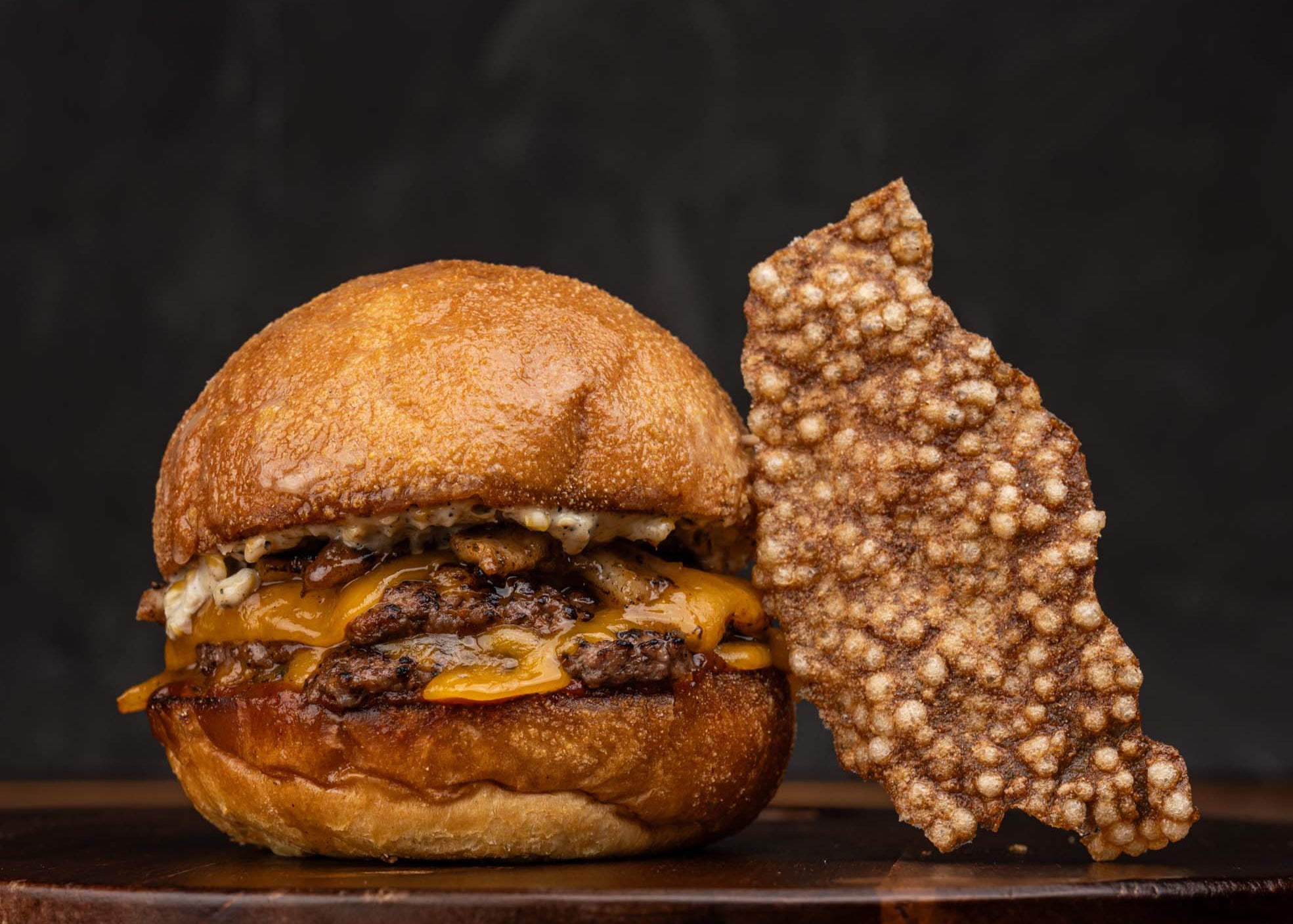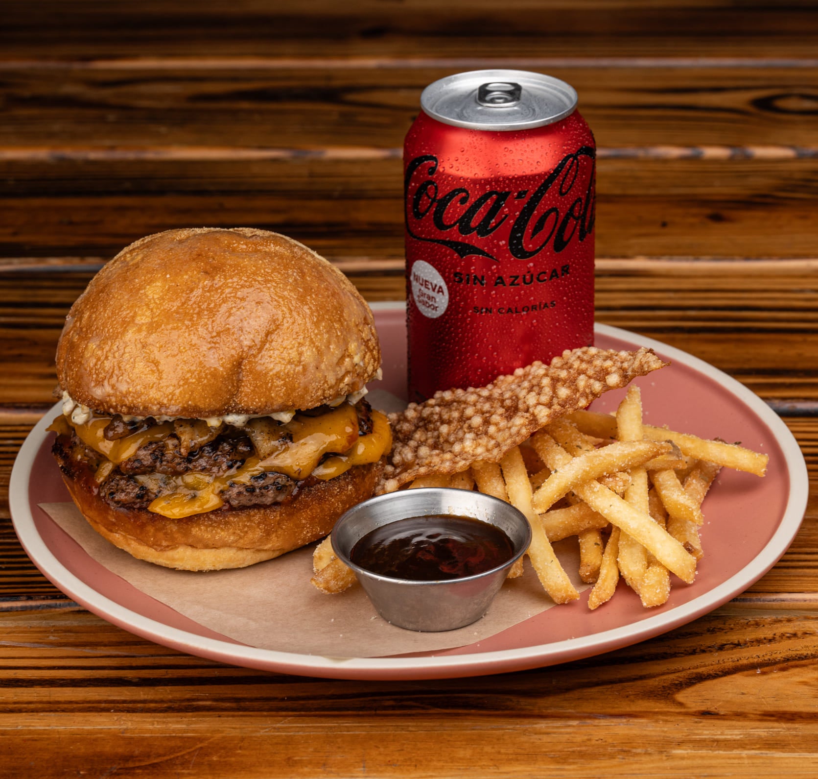 Arrancamos con un pan de maíz artesanal (cornbread), acompañado de pork butt al pastor caribeño, chutney de la mejor piña del mundo (la panameña), salsa Calyp-Zonian y un crocante de tamal pero sin pasitas. A esto le sumamos unas papas fritas con nuestros polvos a base de ajo, cebolla y nuestro Jerkchup.